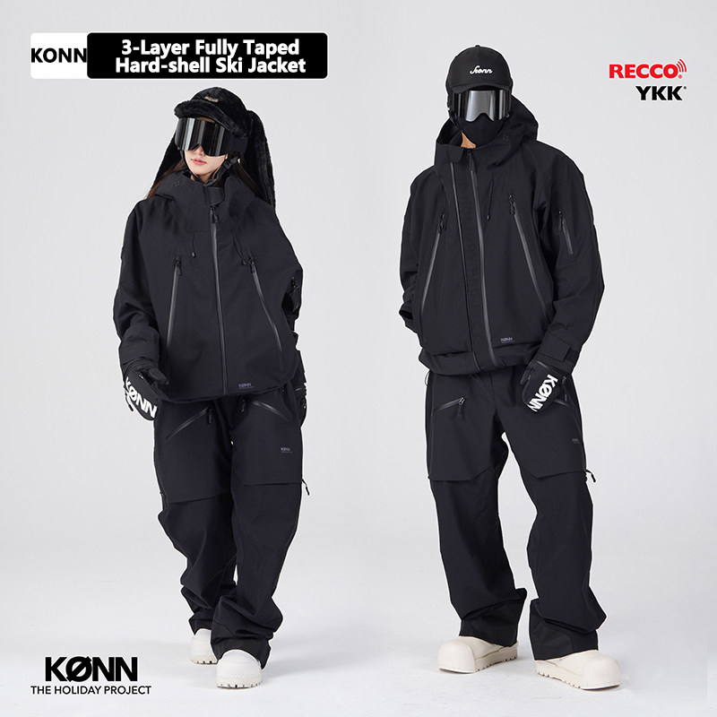 KONN Black Ski Jacket 3L Fully Taped RECCO Hard Shell Professional Waterproof Breathable Warmness Men’s/Women’s Ski/Snowboard Jacket