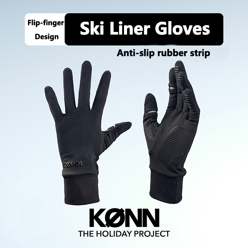 KONN Ski Liner Gloves for Men and Women Single/Double Board Winter Warmth & Cold Protection Five-Finger Touchscreen Compatible Flippable Finger Design Windproof