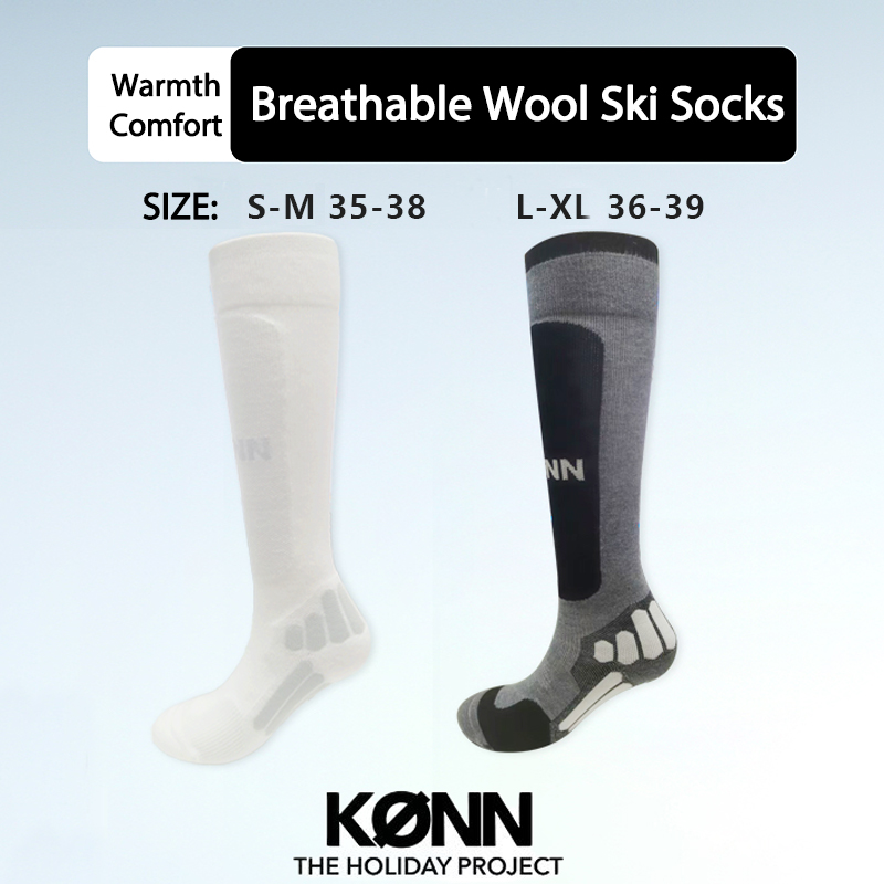 KONN Ski Socks for Women and Men – Wool High-Top Socks, Long Socks, Professional Winter Thickened Outdoor Cold-Resistant Warm Breathable